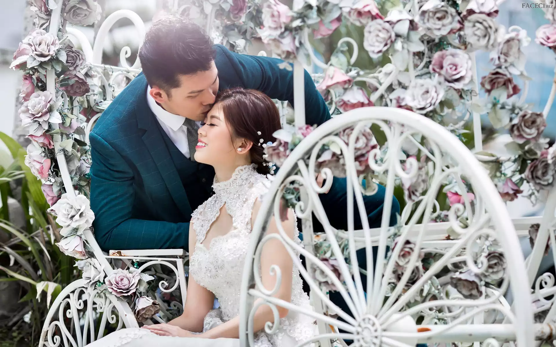 Kwiaty, Ślub, Kobieta, Para młoda, Mężczyzna - faceci.biz